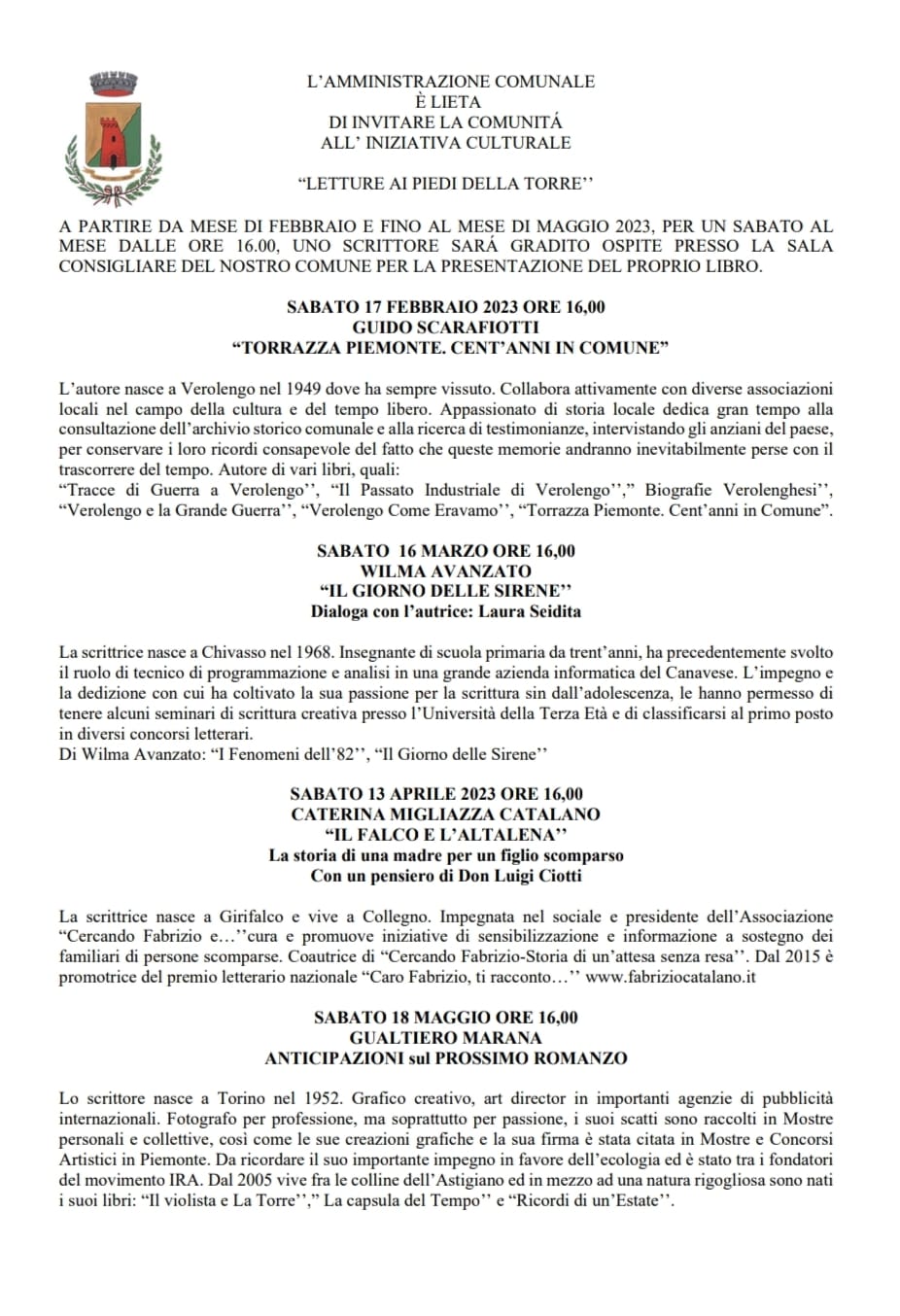 - sabato 17 febbraio 2024 ore 16,00 "Torrazza Piemonte. Cent'anni in Comune" - Giudo Scarafiotti;